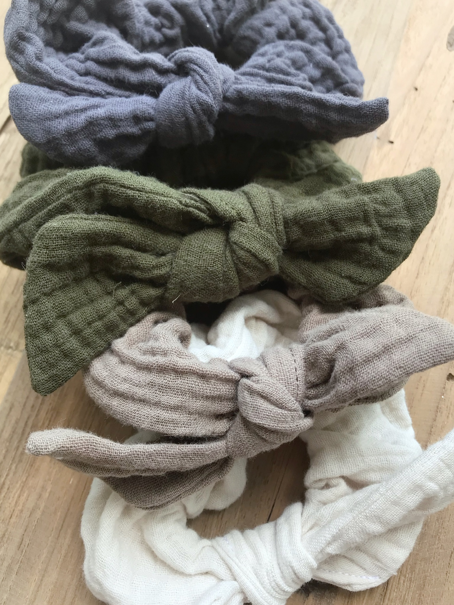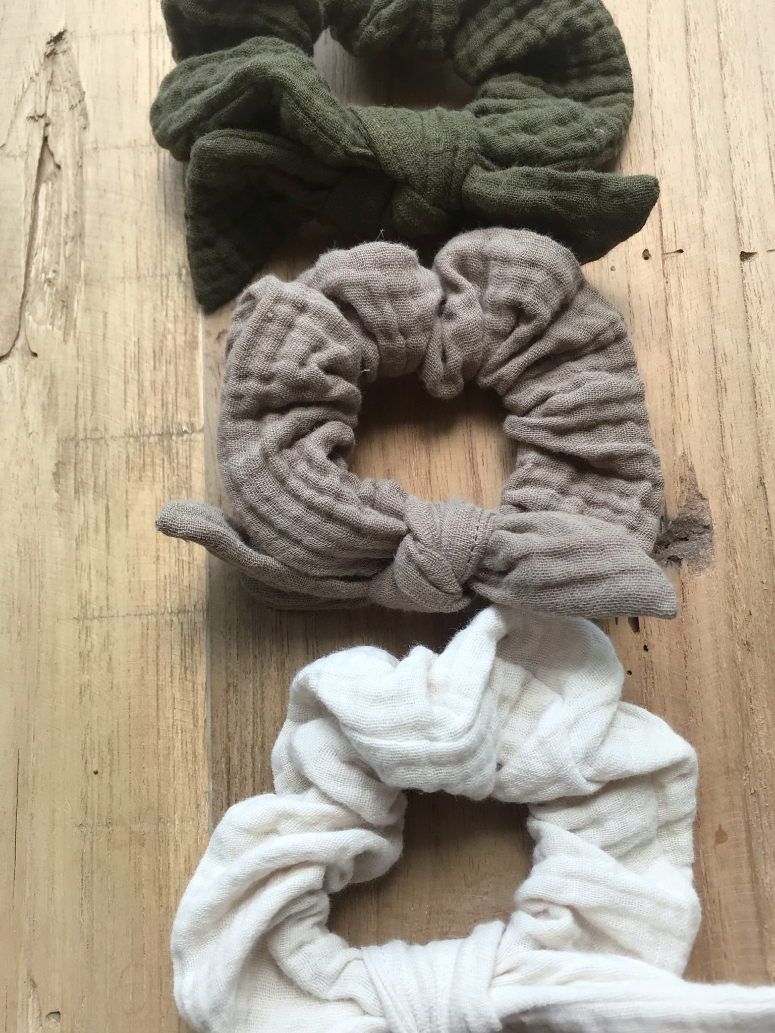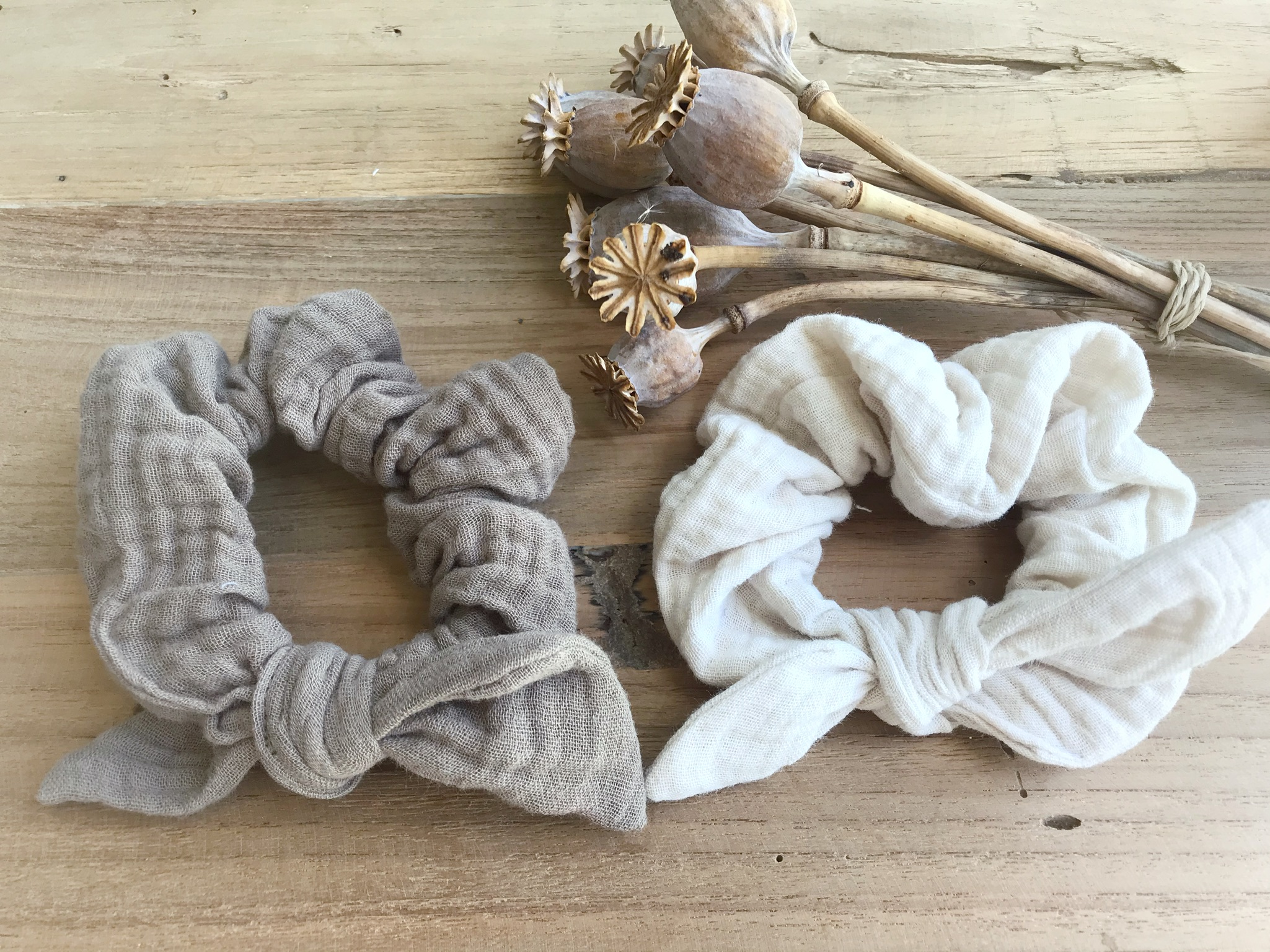 Handgemachtes Scrunchie Maila aus weichem Musselin-Baumwollstoff nach Ökotex Standard 100